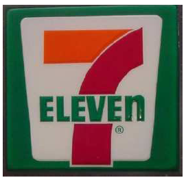 In the second of its complaints, 7-Eleven adds an allegation that it has frequently used its logo in a monochromatic variety, such as shown at the right. It then identifies two additional Macon locations using the same 7-SEVEN logo shown above regarding the Popli lawsuit: